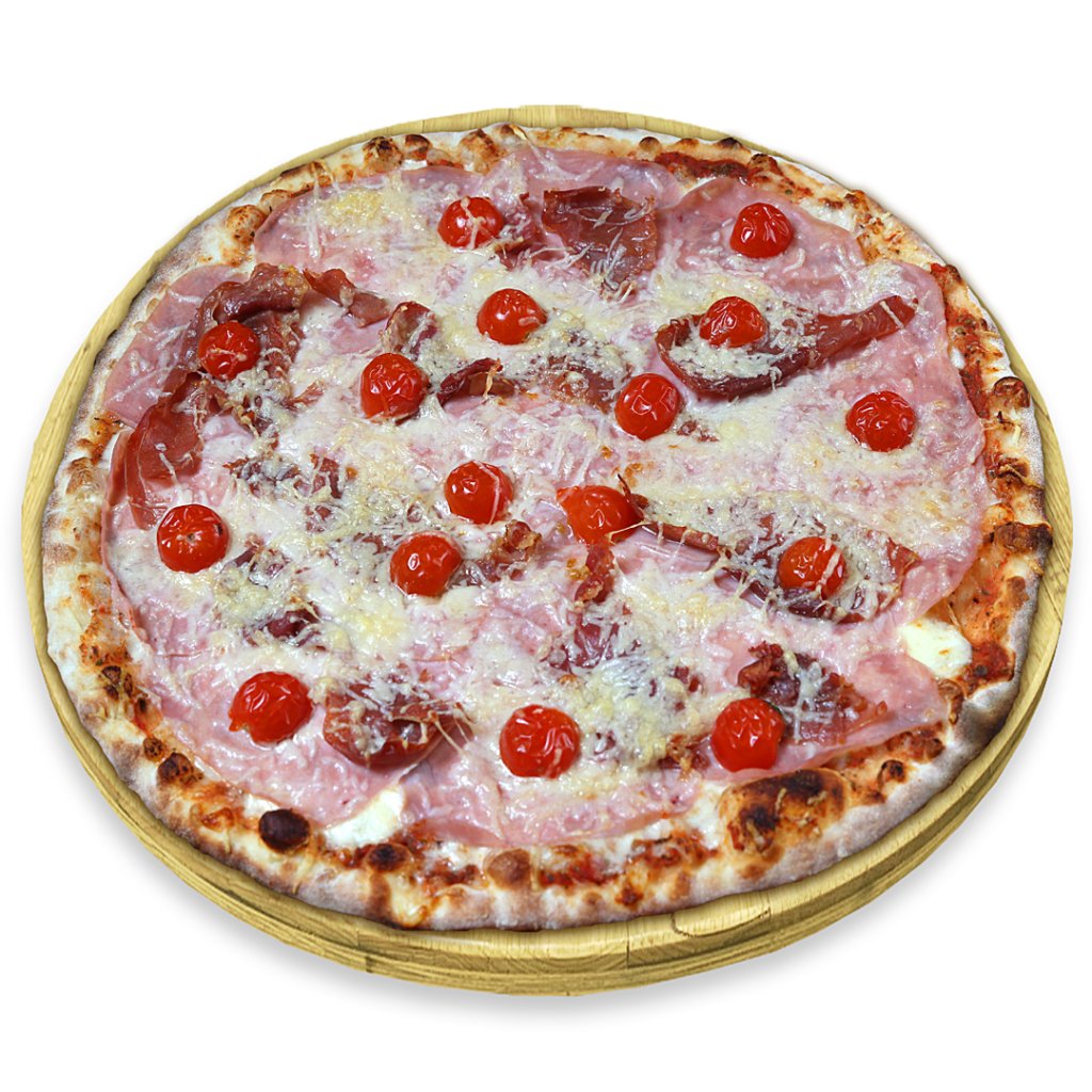 polpa,mozzarela,šunka,parmská šunka,cherry rajčátka,parmezán,bazalka