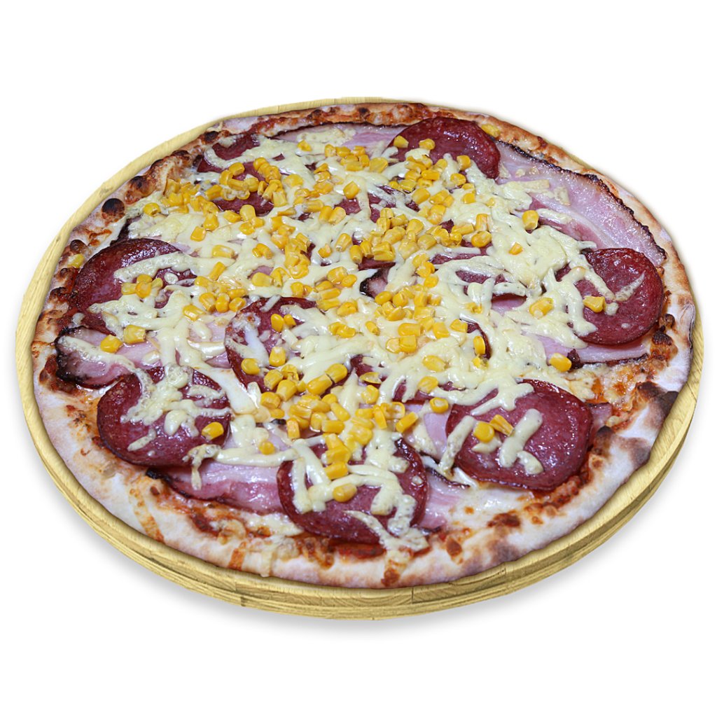 polpa,mozzarela,slanina,suchý salám,kukuřice,uzený sýr
