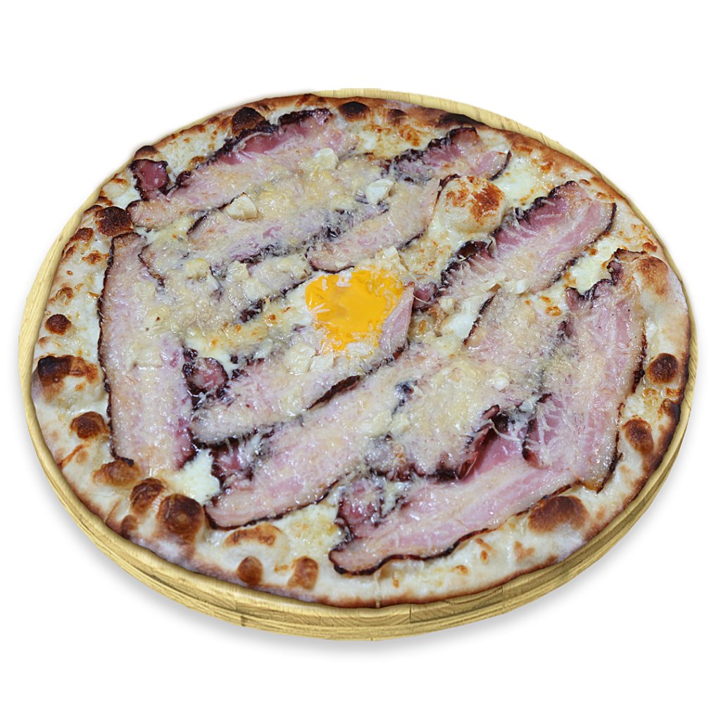 SMETANA/MOZARELA, SLANINA, ČESNEK, VEJCE, PARMEZÁN