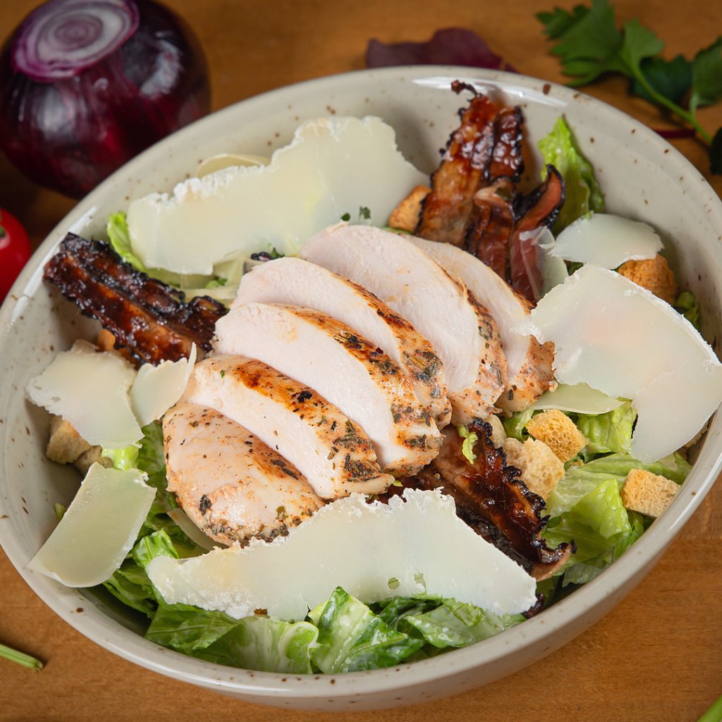 rajčaty,krutony,slaninou a parmezánem, ančovičková majonéza