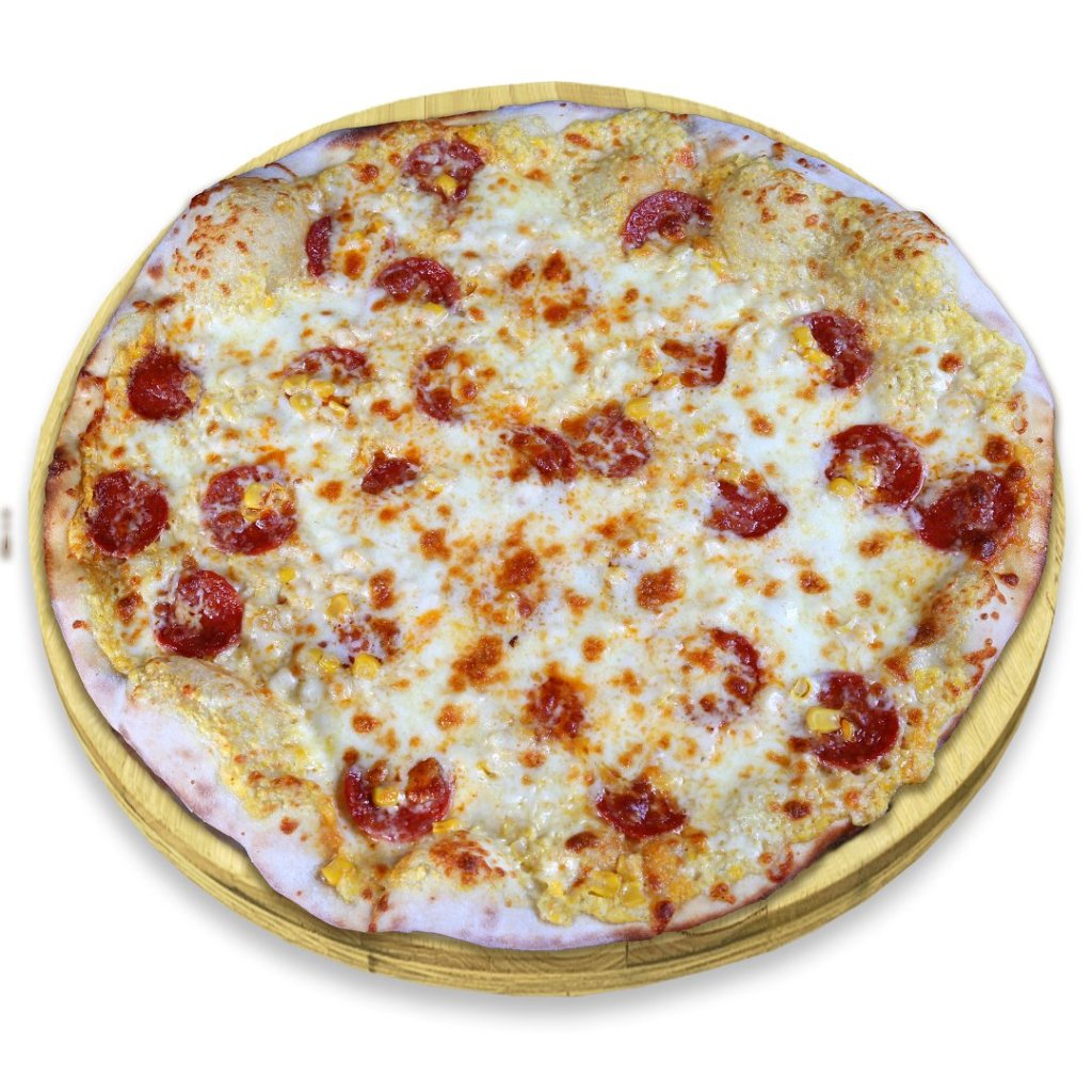 smetana,mozzarella,španělské chorizo,kukuřice,eidam,bazalka